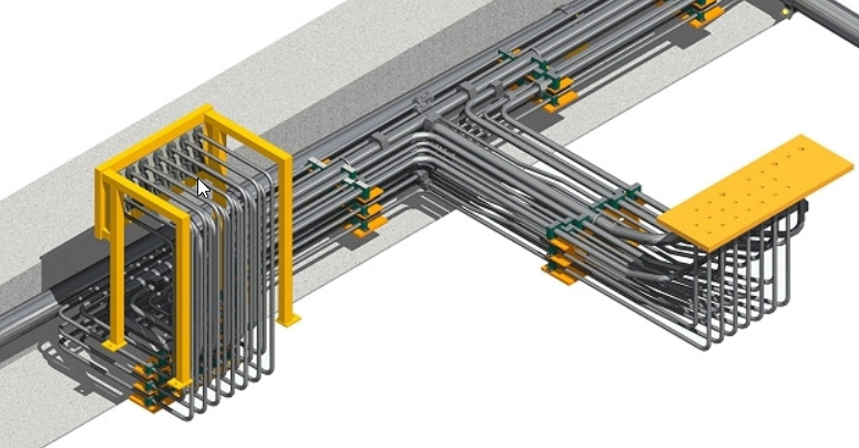 Model ducts and cable ladders by using parametric driven generic components. Route the ducts and cable ladders by showing the center line. The program adds required elbows and bend automatically. The libraries have several other components like branches, block bends, reducers and caps for the ducts. There are vertical and horizontal ladders for cables plus several other components like t-pieces, bends etc. are available.