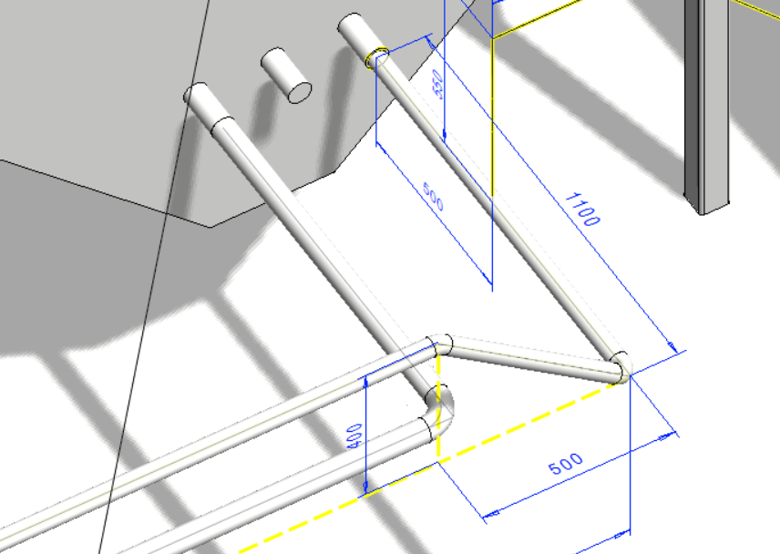 The program has library components for modeling platforms, stairs and railings. Define values like platform length and width, railing height, angle and spacing of stairs easily. Use continuous routing to model stairs and platforms.