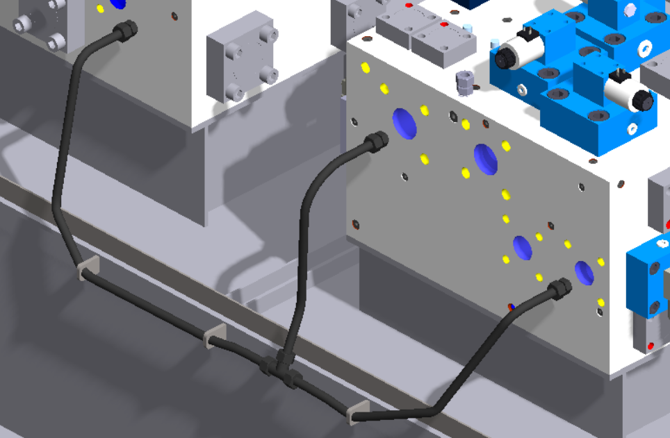 Manage the hose route using fixed points and add equipment to the hose.