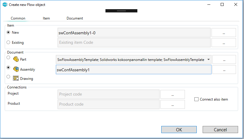 - create generic item swConfAssembly1 and add to its structure items swConfAssembly1-0 and swConfAssembly1-1. More information about creating generic items can be found in Flow documentation.
