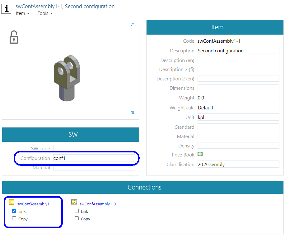 - link new item to drawing if all configurations have a common drawing: swConfAssembly1-0