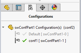 - add a new configuration to the model with the name conf1 in SolidWorks configurations tab