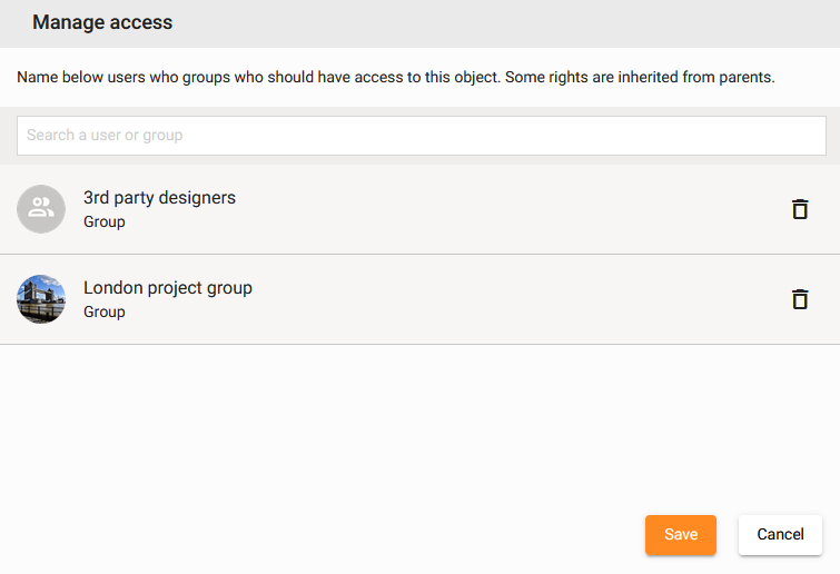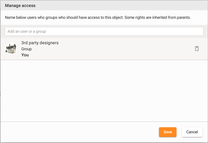 If you want to remove access from a user or a group, click the recycle bin icon.